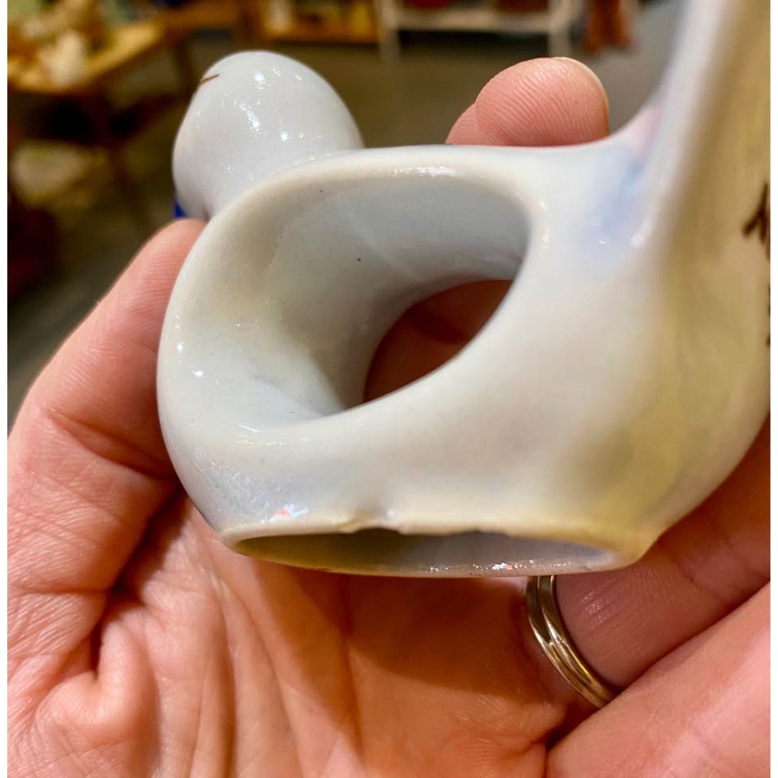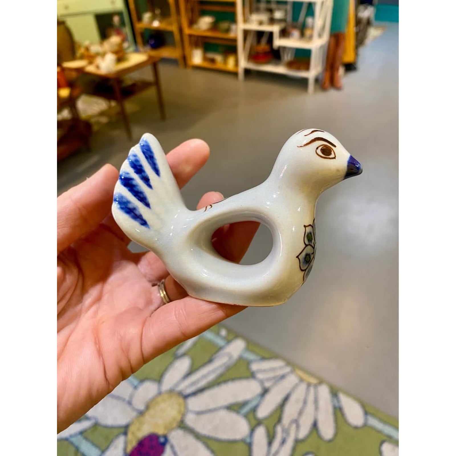 Hand painted Tonala style bird napkin rings. Set of 6. Mexico. Blue and white birds with flower painted details. Ceramic. One has mini chip/ marking on bottom. Does not affect its usage.