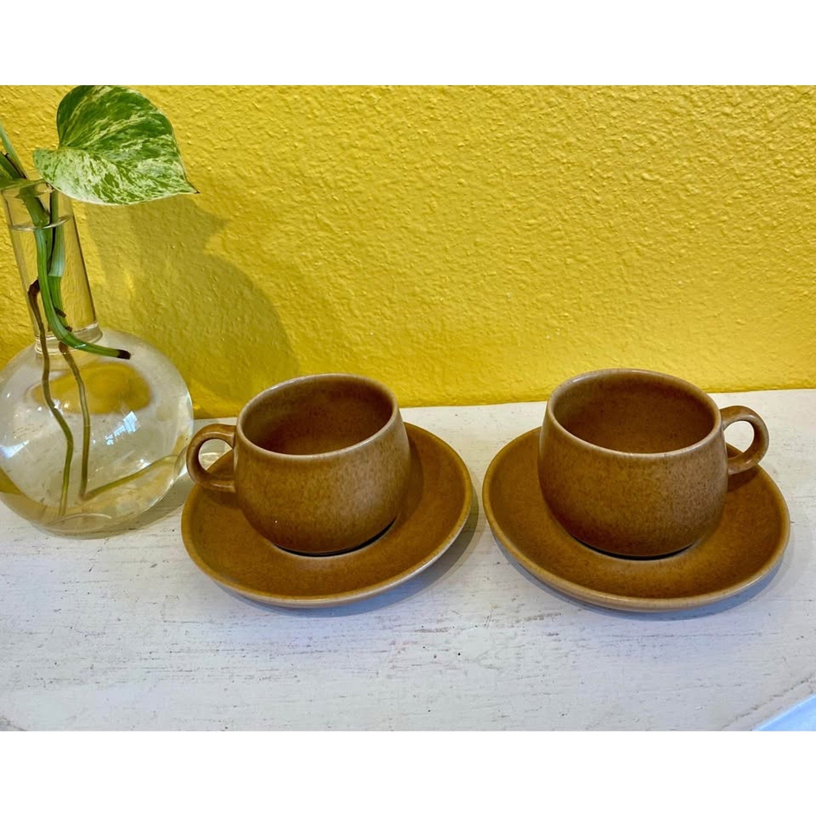 Vintage Denby Stoneware Tea Cups and Saucers. Set of 2