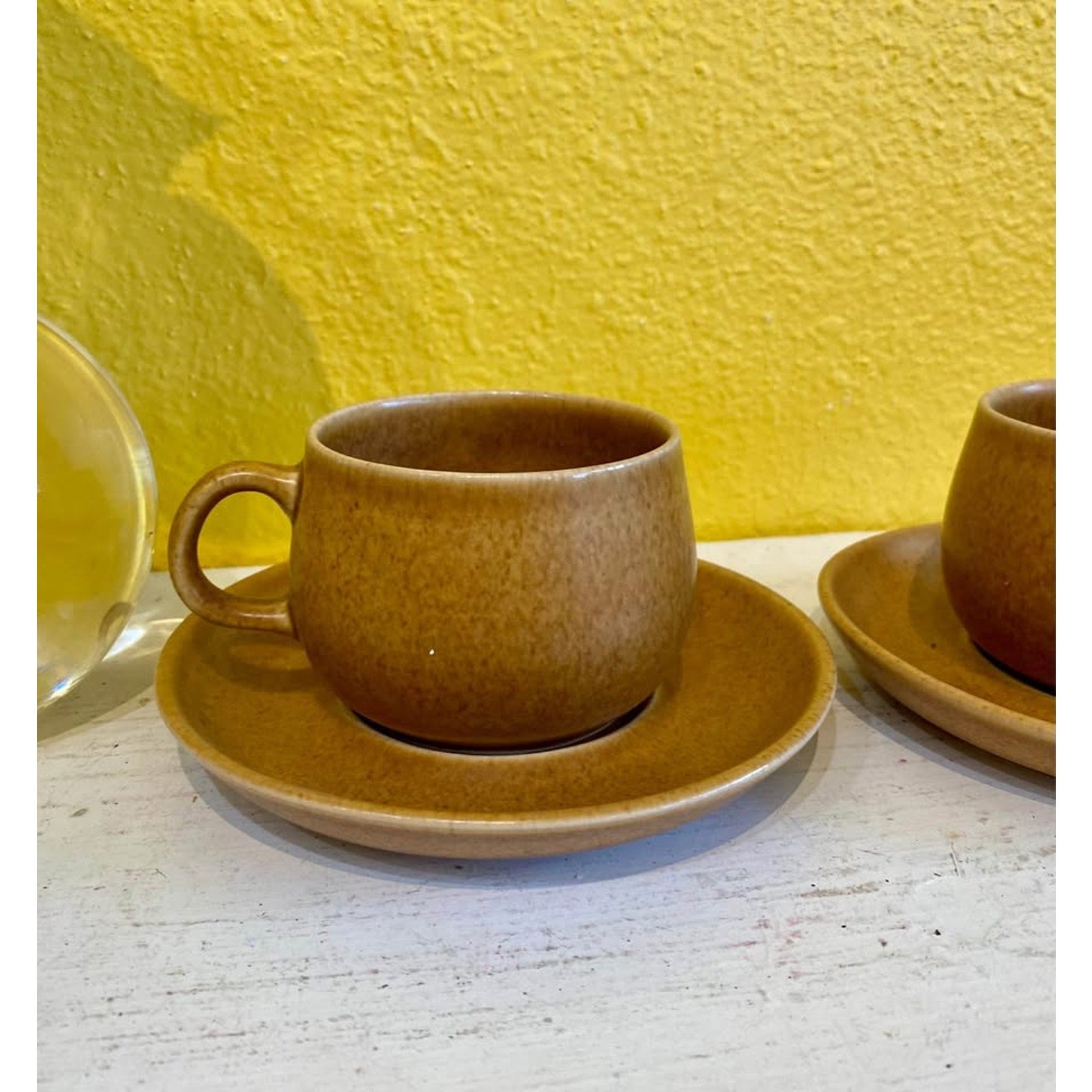 Vintage Denby Stoneware Tea Cups and Saucers. Set of 2. Super cute. Saucers measure 5.75” No condition issues.